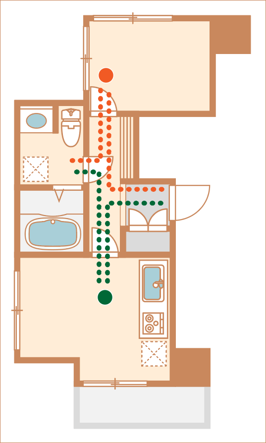 室内を動く時にお互いに妨げとならないような間取りになっているか、ここが一番気になるところです。